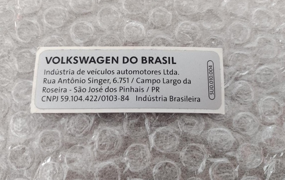 ETIQUETA CERTIFICADO FABRICAÇÃO PINHAIS/PR FOX,GOLF ORIGINAL (NOVO)